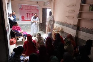 Bhavna Joshi, an organization worker, provided information on the procedures, support services, and complaint registration at the Sakhi Center and Women’s Counseling and Protection Center.